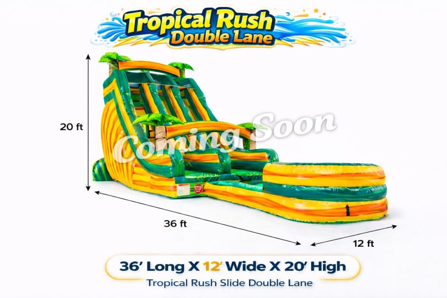 The Tropical Rush Double Lane (Wet) is a high-energy inflatable water slide built for racing, splashing, and nonstop fun. With dual lanes and a bright tropical design, it’s perfect for birthdays, backyard parties, and summer events where kids can race side-by-side while staying cool.